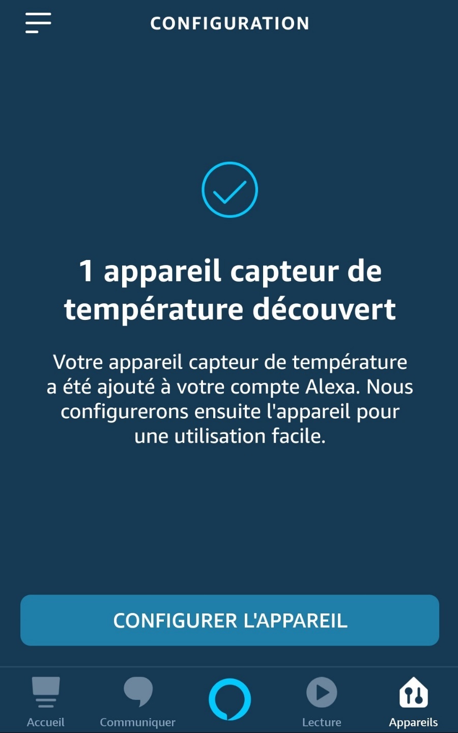 Ça y est, votre capteur est appairé à Alexa. Mais vous voyez tout de suite une petite subtilité : le capteur est reconnu comme un thermomètre… seulement. C’est une limitation d’Alexa qui ne permet pas encore la remontée d’information autre que la température, à date. Mais cela va sûrement venir. Ce défaut n’est donc pas inhérent à SwitchBot mais à Alexa, on ne peut donc pas leur reprocher. L’expérience utilisateur reste malgré tout assez limitée car à part voir la température en appuyant sur l’icône de l’appareil et demander à Alexa « Quelle est la température de X », ça s’arrête là. Pas de possibilité de l’intégrer dans des routines ni rien du genre. Comme tous les thermomètres à l’heure actuelle. Là encore, nous sommes plus sur des limitations liées à Alexa qu’aux fabricants. Mais une Skill multimodale pour faire apparaitre la température sur l’écran d’un Show ou du Spot serait bien venue.