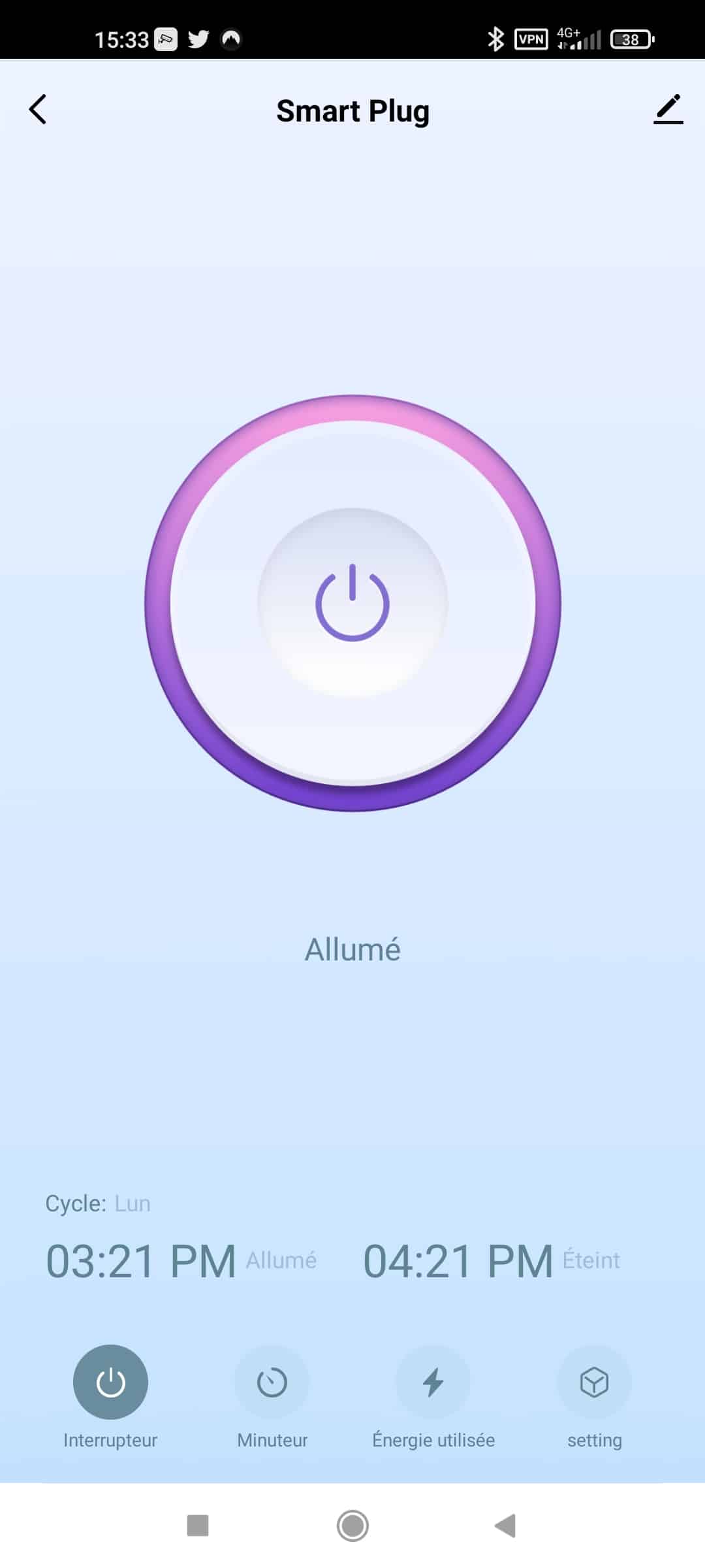 - Calendrier du cycle : ici c’est un autre genre de programmation. Il est en effet possible de faire des alternances ON/OFF. Parfait pour simuler une présence par exemple. Dans un premier temps il convient d’indiquer la plage horaire pendant laquelle cela doit fonctionner, puis le créneau des commutations. A noter que seules les programmations de cycle apparaissent sur la page principale.