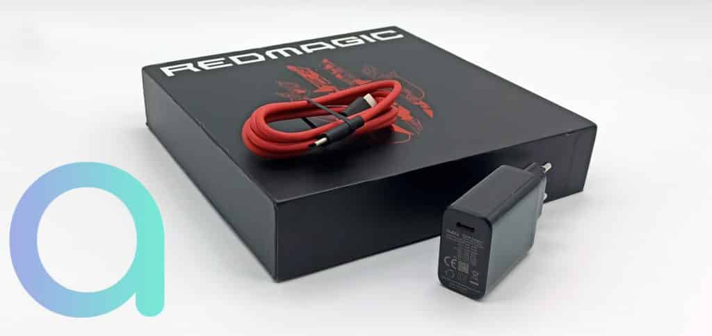 Le Nubia RedMagic 6 est la version light du 6 Pro sorti en même temps (mais avec plus de mémoire de stockage et encore plus de RAM). Il est livré dans un carton noir, surmonté du seul logo rouge et agressif de la marque telle des griffes ou des dents ! Une chose est sûre, ils ne sont pas là pour rire. Elle fait 19,5 x 19,5 x 4 cm.