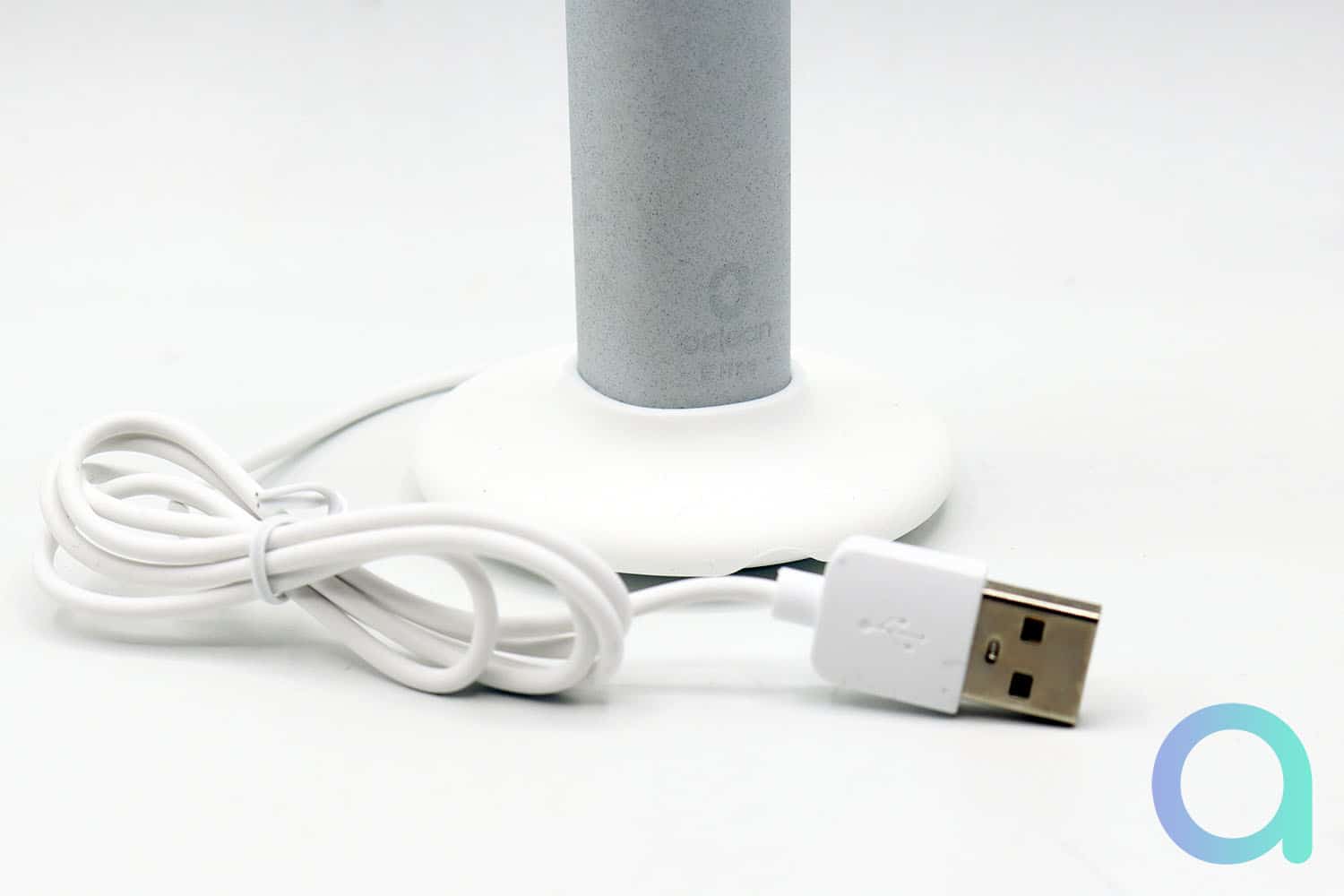 En effet, la nouvelle Oclean X Pro Elite est livrée avec un chargeur rapide à induction, système que nous sommes plus habitués à voir dans un test de smartphone, mais dont l’utilité est finalement peut-être encore plus grande ici. Un système qui permet de la recharger complètement en moins de 1h30 pour une autonomie de plus de 35 jours.