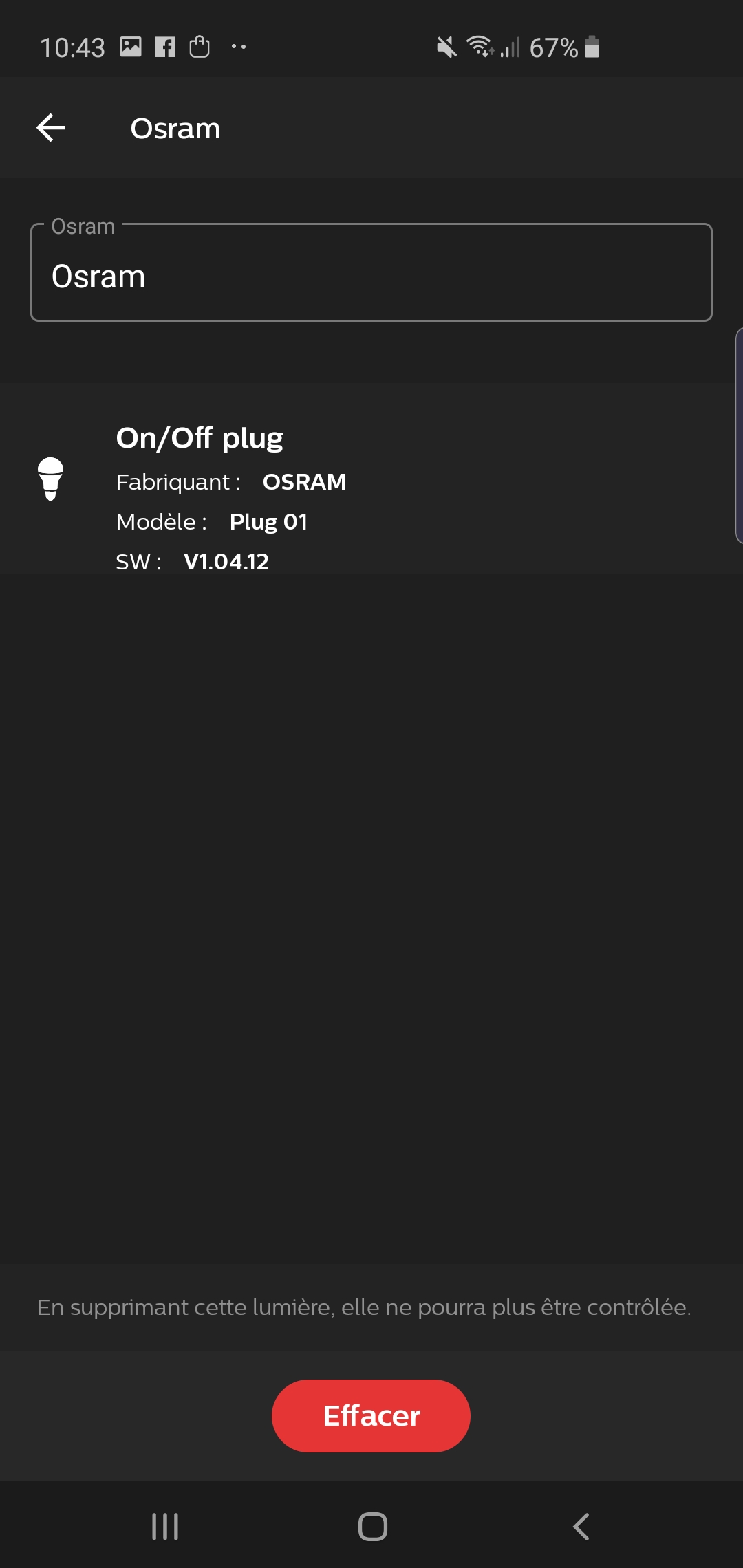 Nous n’allons en fait pas rentrer dans les détails de son installation tellement elle s’avère simple. Il vous suffit en effet de brancher votre prise et d’ouvrir l’application Hue. Appuyez ensuite environ 5 secondes sur le bouton d’alimentation et lancez une détection des nouveaux appareils de la même façon que pour vos ampoules et accessoires. La prise est détectée en quelques secondes et apparaît aux côtés de vos éclairages Philips Hue ou compatibles. Seul regret, la prise OSRAM Smart+ se présente alors comme une ampoule. C’est un peu dommage car vous retrouverez le logo ampoule dans votre application et non celui d’une prise. Mais, au fond, cela n’a pas guère d’importance, les fonctionnalités d’une telle prise étant des plus basiques : on / off.