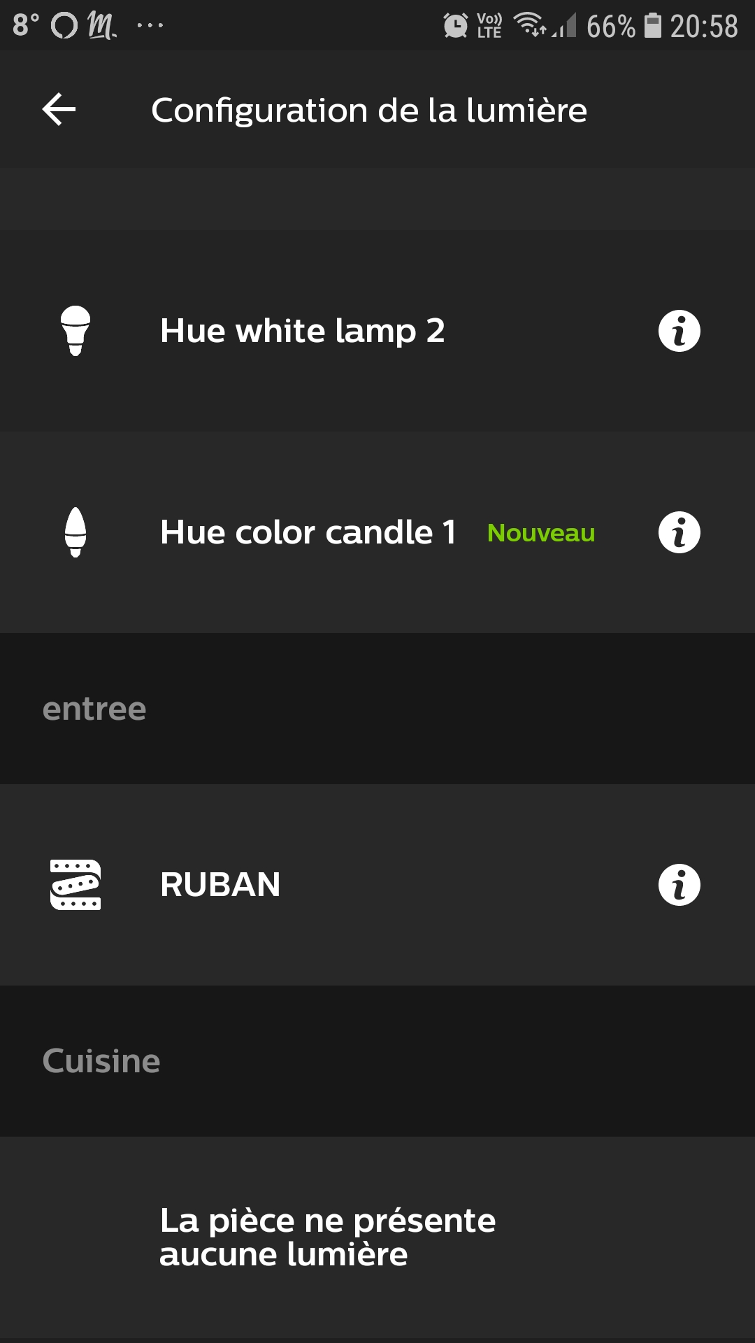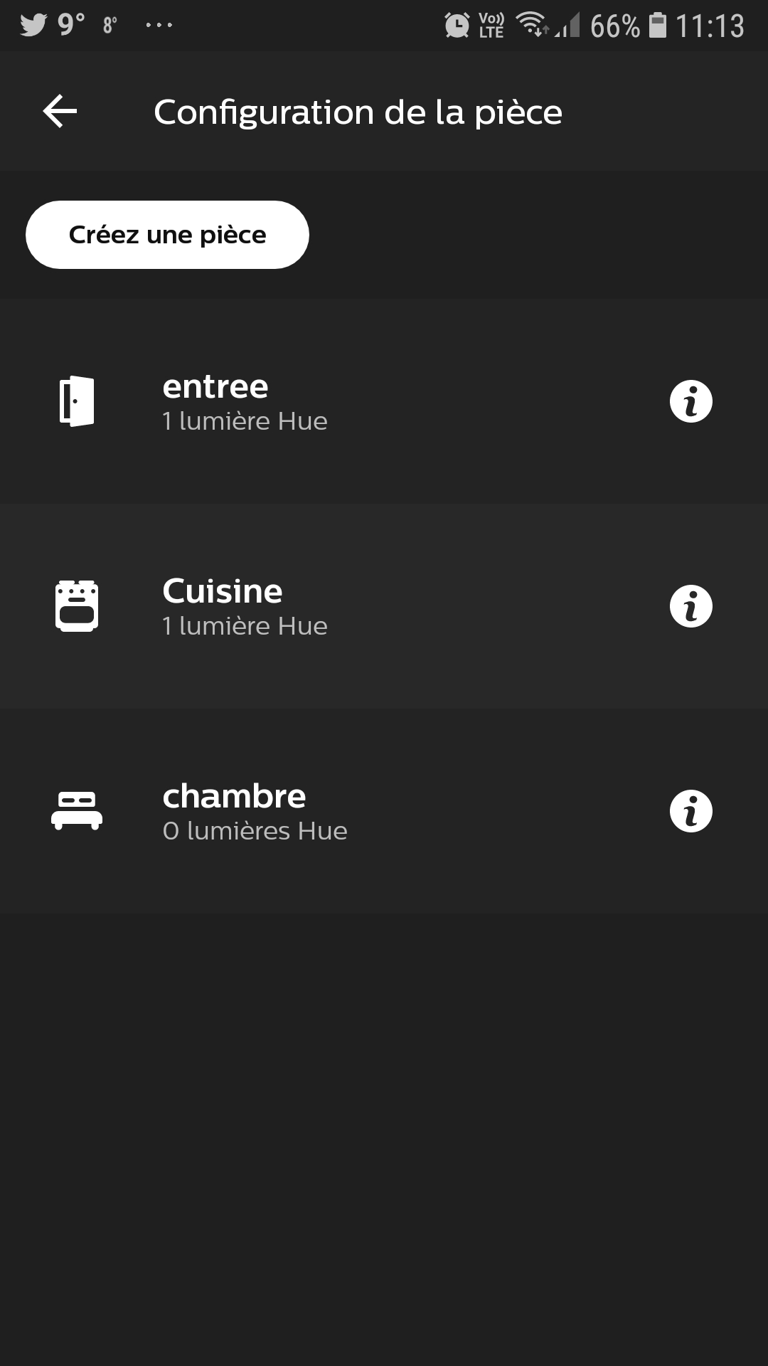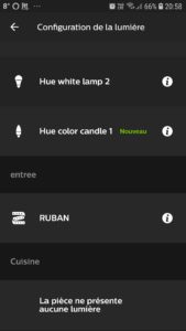Il ne reste plus qu’à lui attribuer la pièce de destination en revenant dans « configurer une pièce » et choisir l’ampoule et la pièce qui doivent être associées.