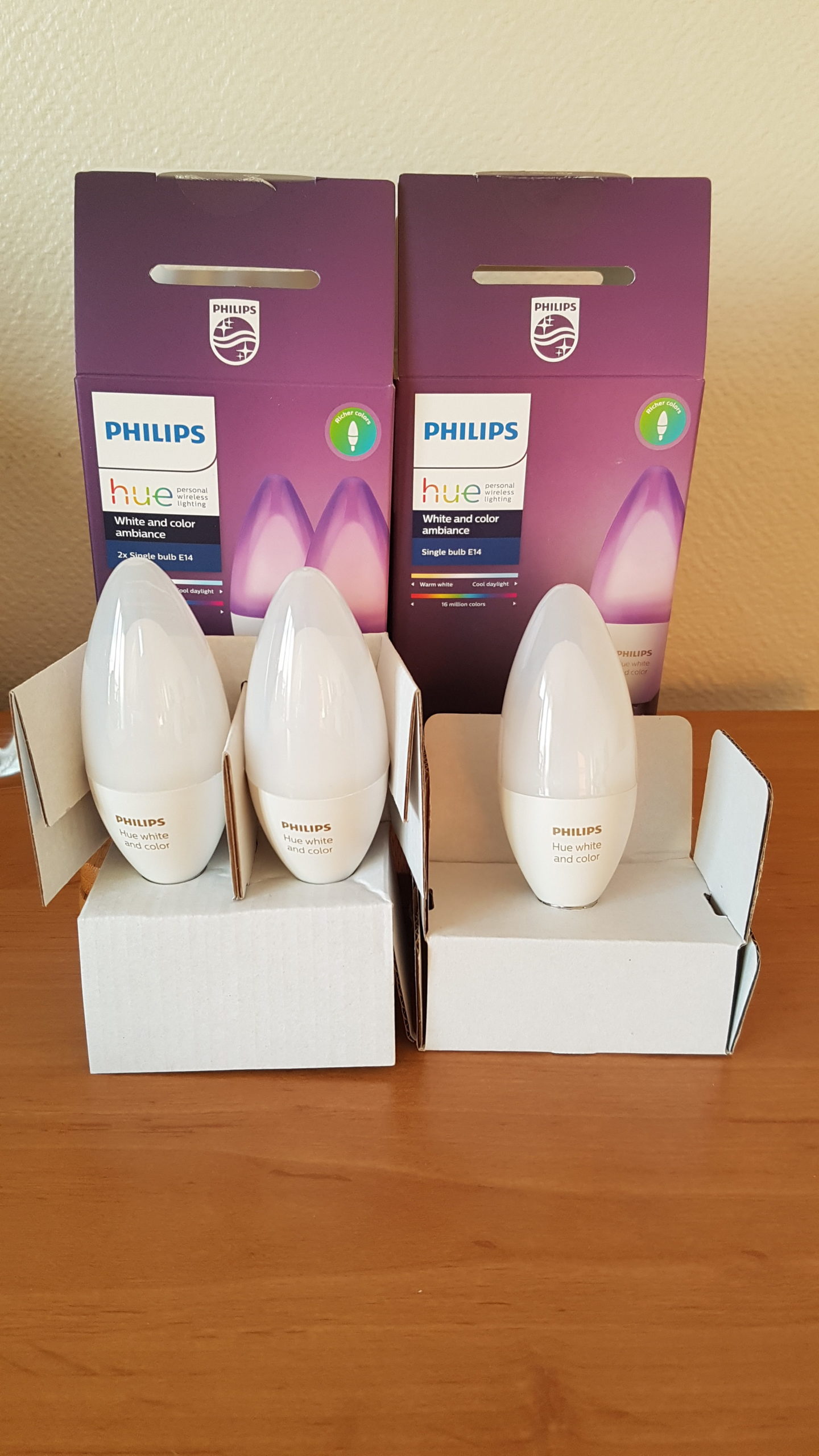 Ce sont ces dernières que nous testons pour vous aujourd’hui : les Philips Hue White & Color Ambiance E14, qui nous promettent 6,5 Watts et 450 lm. Elles sont vendues à l’unité, ou par lot de 2 pouvant être sur-conditionnées par 3 en fonction des promotions. Comptez environ 50€ l’unité hors promotion (93,99€ par lot de 2 sur Amazon.fr). A ce prix, que valent-elles vraiment?