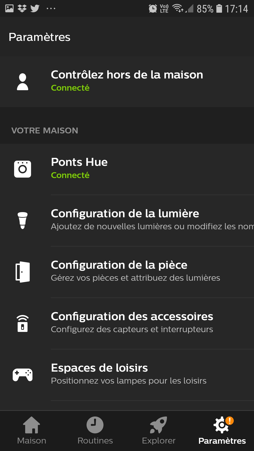 L’étape suivante va consister à faire reconnaitre votre ou vos ampoules. Et c’est enfantin ! Dans l’application Hue, allez dans « paramètres », « configuration de la pièce » et ensuite « configuration de la lumière ».
