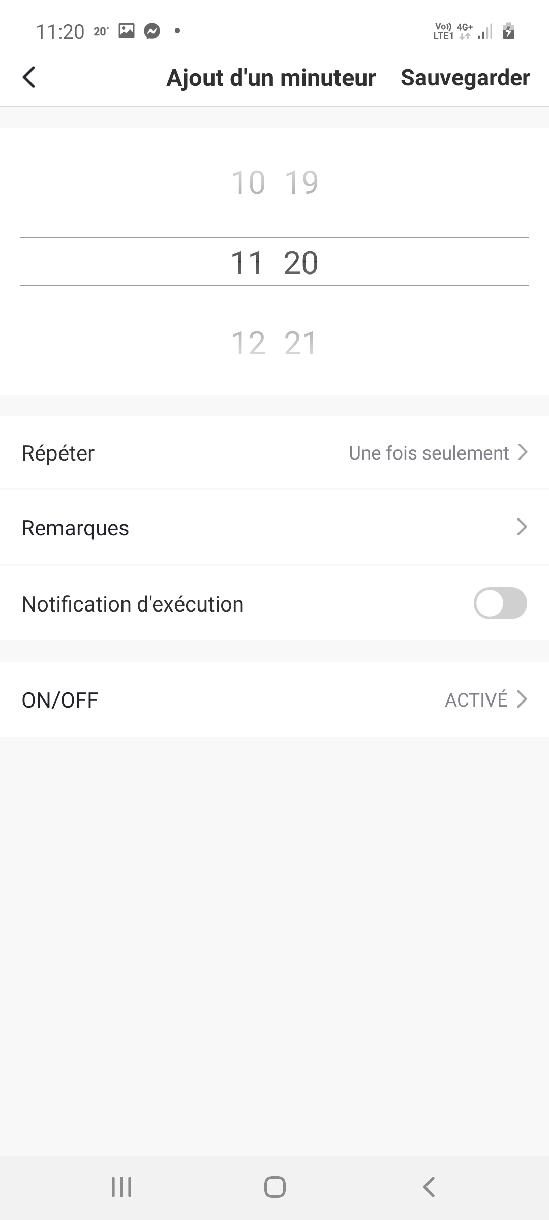Lorsque l’on sélectionne l’icône depuis la page d’accueil, le plafonnier LSC apparait sous la forme d’une ampoule. Pour avoir accès aux différents réglage possibles depuis l’application Smart Life, il faut cliquer sur le bouton On/Off placé au centre en bas de la barre des menus. Ceux-ci sont bien pratiques si l’on veut par exemple simuler une présence.