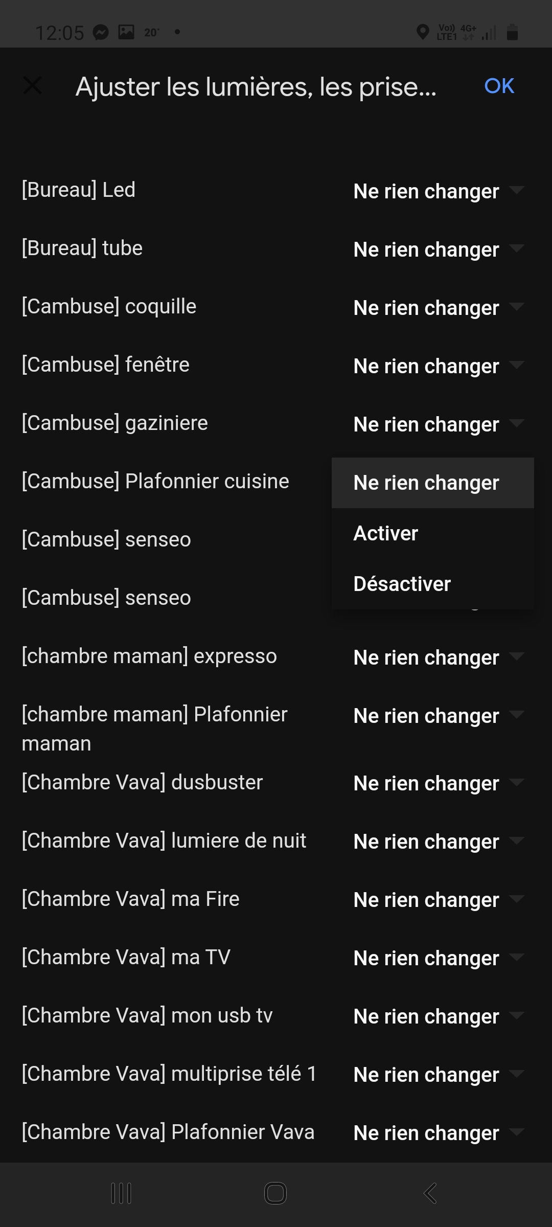Ici aussi, notre plafonnier de cuisine apparait bien. Tout comme dans Alexa, ll est possible de l’intégrer à des routines Google Assistant.