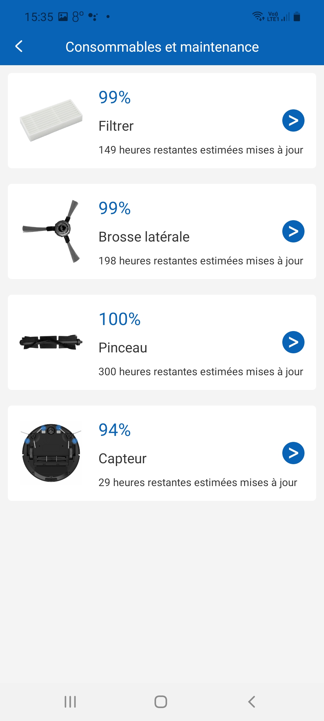Du coté application, elle est simple et intuitive, bien détaillée au niveau de chaque fonction, et est à privilégier par rapport à la télécommande car, notamment avec le bac double, on ne peut que configurer le niveau d’aspiration. Si l’on veut modifier le débit d’eau, il faut passer par l’application. Autant prendre directement l’application.