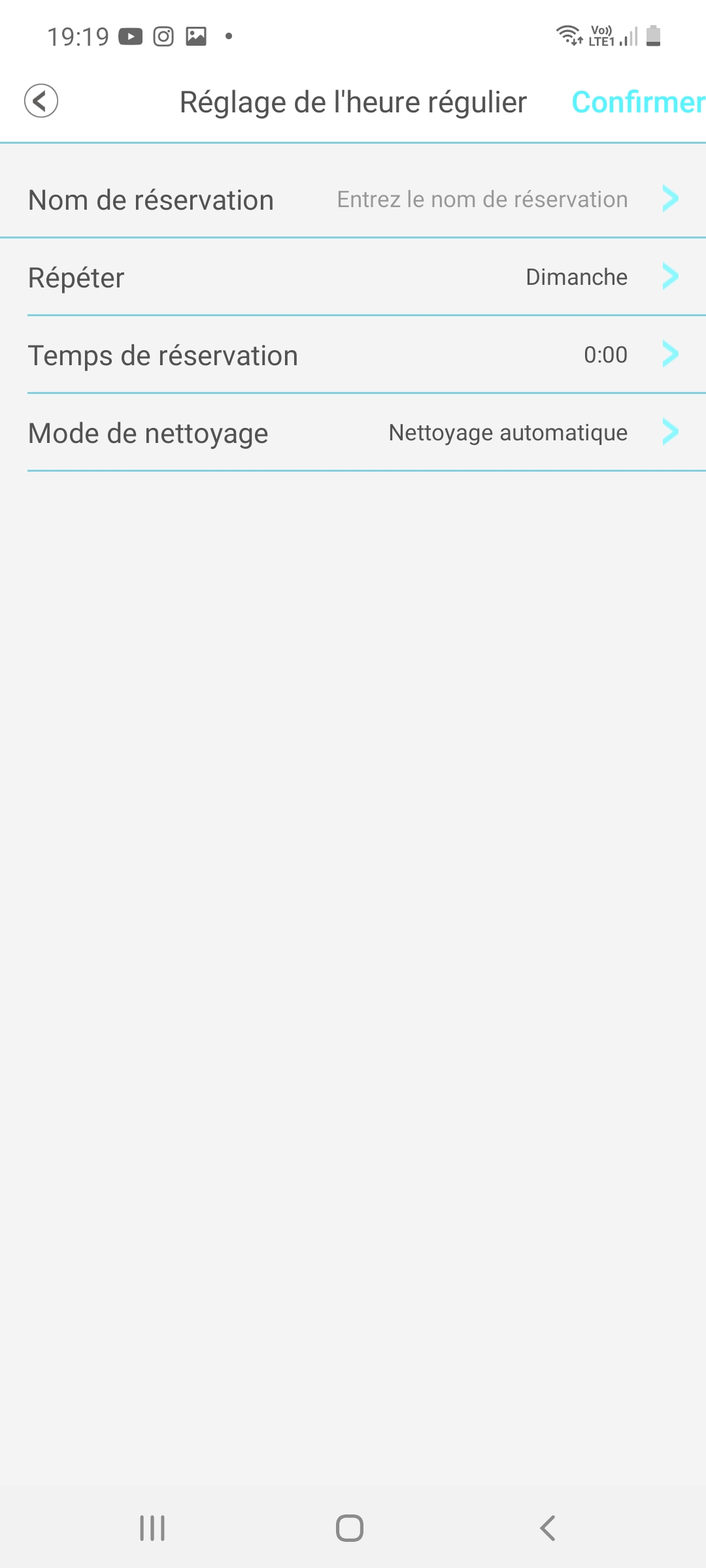 - De réserver le nettoyage : comprenez programmer le nettoyage. Seuls les modes : automatique ou nettoyage des bords sont disponibles. Temps de réservation, traduisez heure de mise en route.