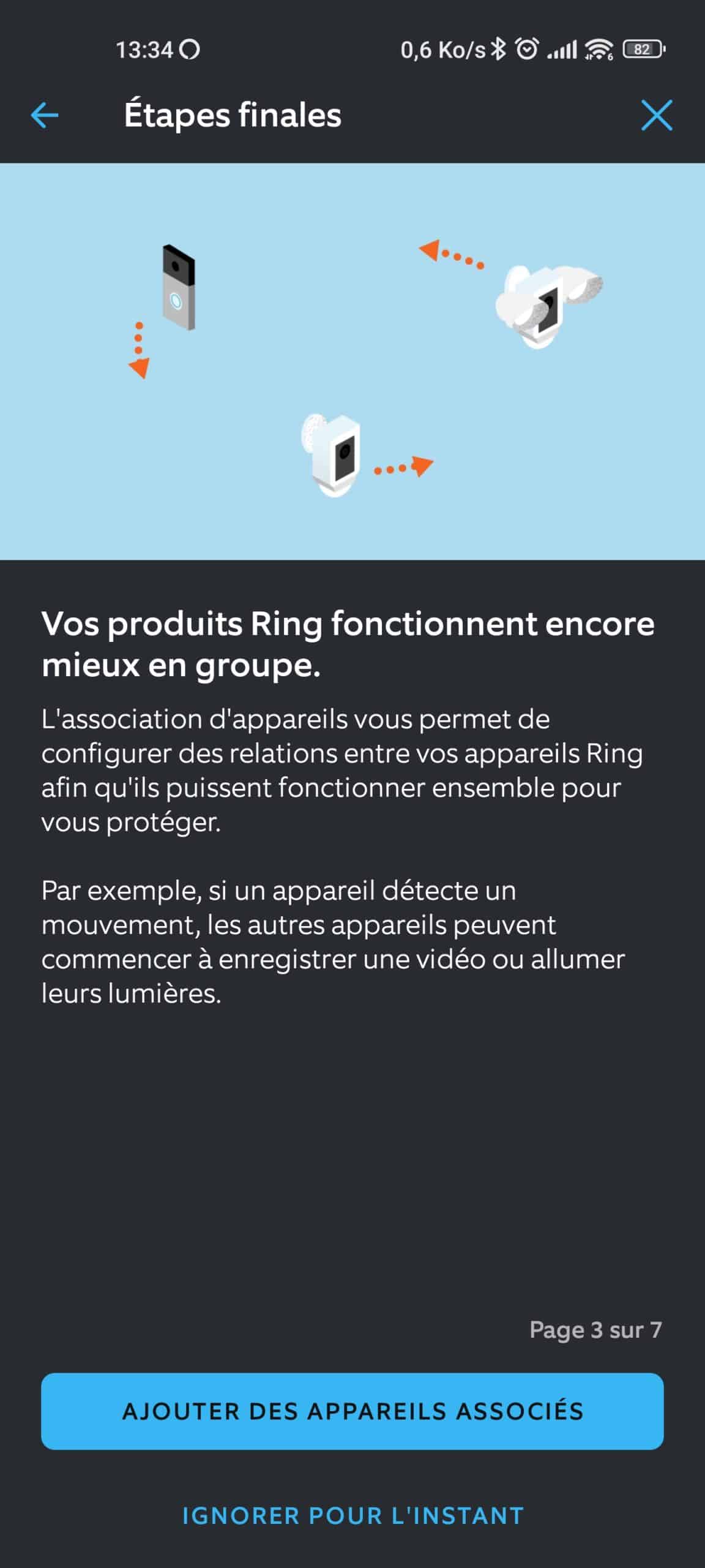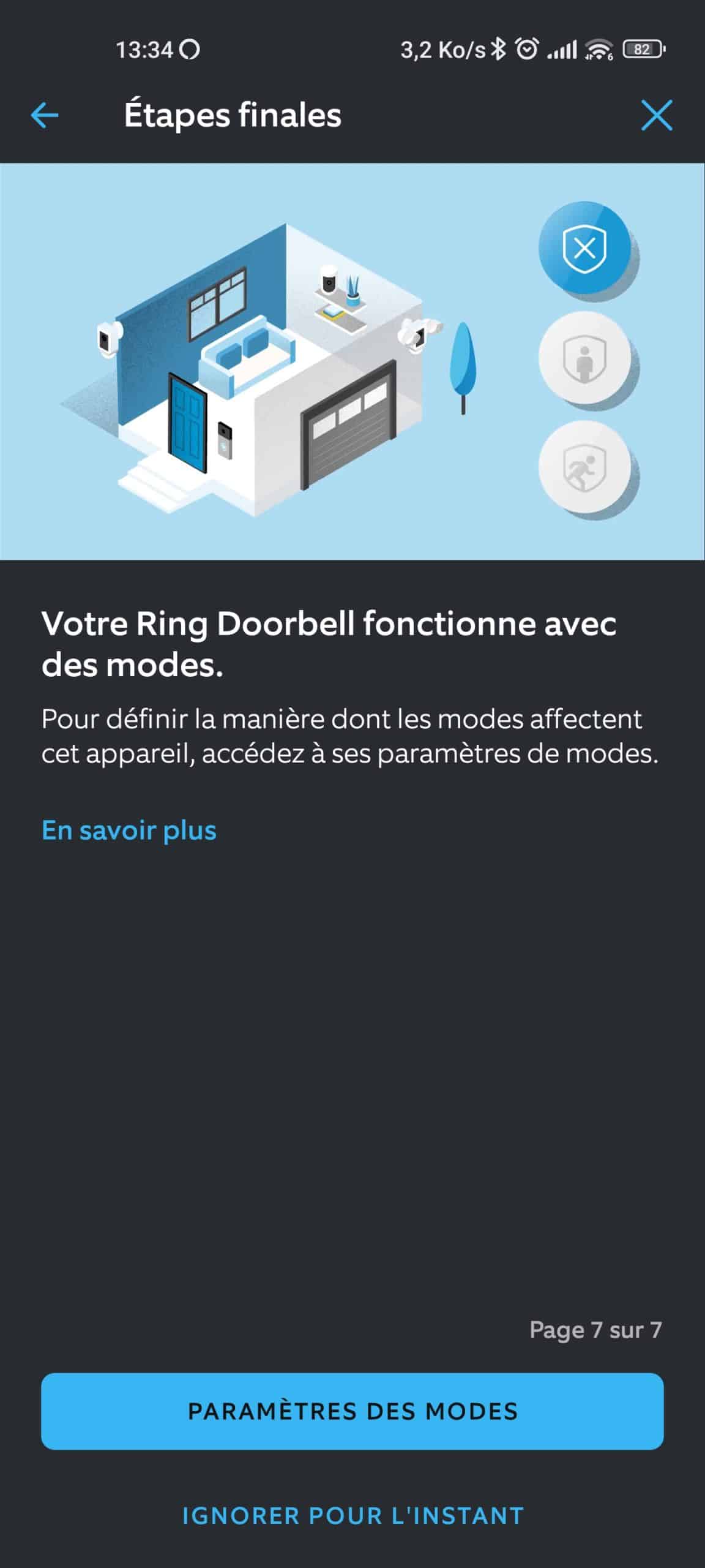 L’application nous propose d’ajouter un ou plusieurs utilisateurs en partage, d’associer d’autres appareils Ring, d’optimiser la détection des mouvements pour votre domicile, de paramétrer des zones de confidentialité et audio, ou encore de définir la manière dont les modes affectent votre sonnette connectée.