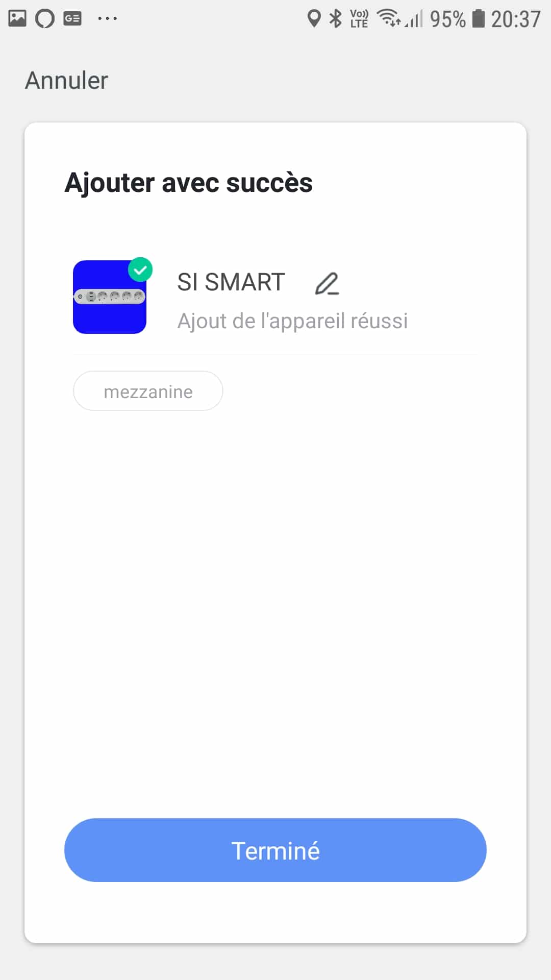 Une fois le scan fait et l’appareil reconnu, celui apparait avec un nom générique qu’il est parfaitement possible de changer en cliquant sur le crayon pour lui donner un nom plus simple. Nous l’avons rebaptisé : Si Smart. Celle ci apparait maintenant sur la page d’accueil de l’application.