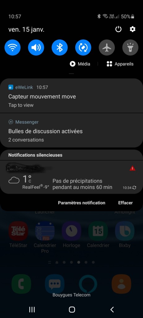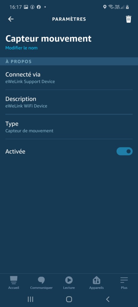 Il est possible d’ajouter un scénario dans l’application où, par exemple, le capteur détectant un mouvement va allumer une lumière reliée au Sonoff Basic ZBR3, voire même envoyer une notification sur le téléphone. Le scénario créé ne remonte pas dans l’application Alexa. Mais l’appareil en lui même oui et là l’intérêt est certain.