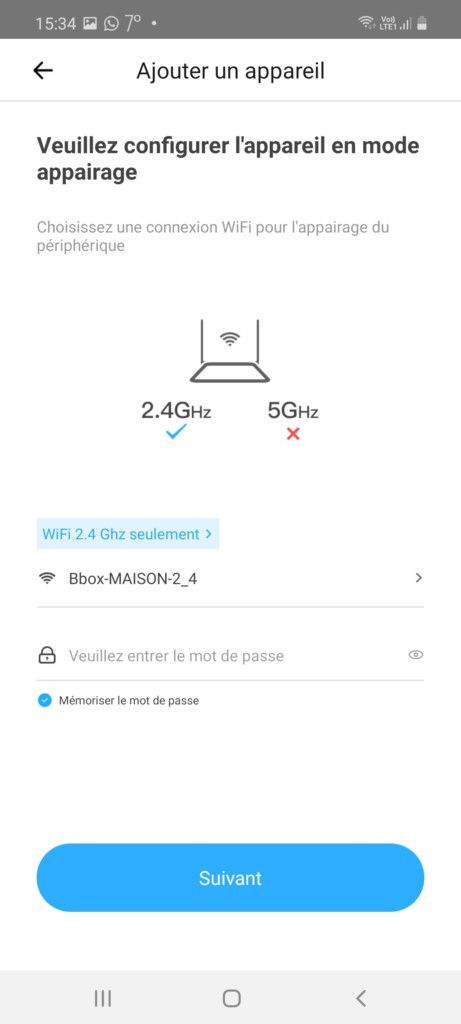 Pensez également, notamment si vous utilisez un routeur mesh type Tenda Nova, à placer votre smartphone sur la bande 2.4 GHz. Après avoir indiqué le nom de son réseau WiFi et son mot de passe, la recherche se lance et si tout à bien été fait, quelques secondes plus tard, la détection affiche le Sonoff ZBBridge que vous pouvez bien entendu renommer pour en simplifier la gestion.