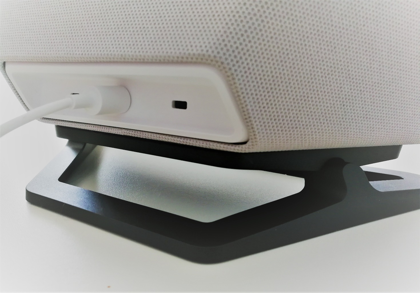 Qu’en est-il du son ? En effet, le fait de mettre en hauteur une enceinte a pour résultante de permettre une meilleure propagation du son car les ondes pourront aussi être réfléchies sur la surface sous le Show et donc avoir plus de corps. Cependant, ne nous leurrons pas, nous ne sommes qu’à 3,5 cm de hauteur et le gain est vraiment minime. Le Show ayant par ailleurs un très bon son, cela ne s’entend que peu.