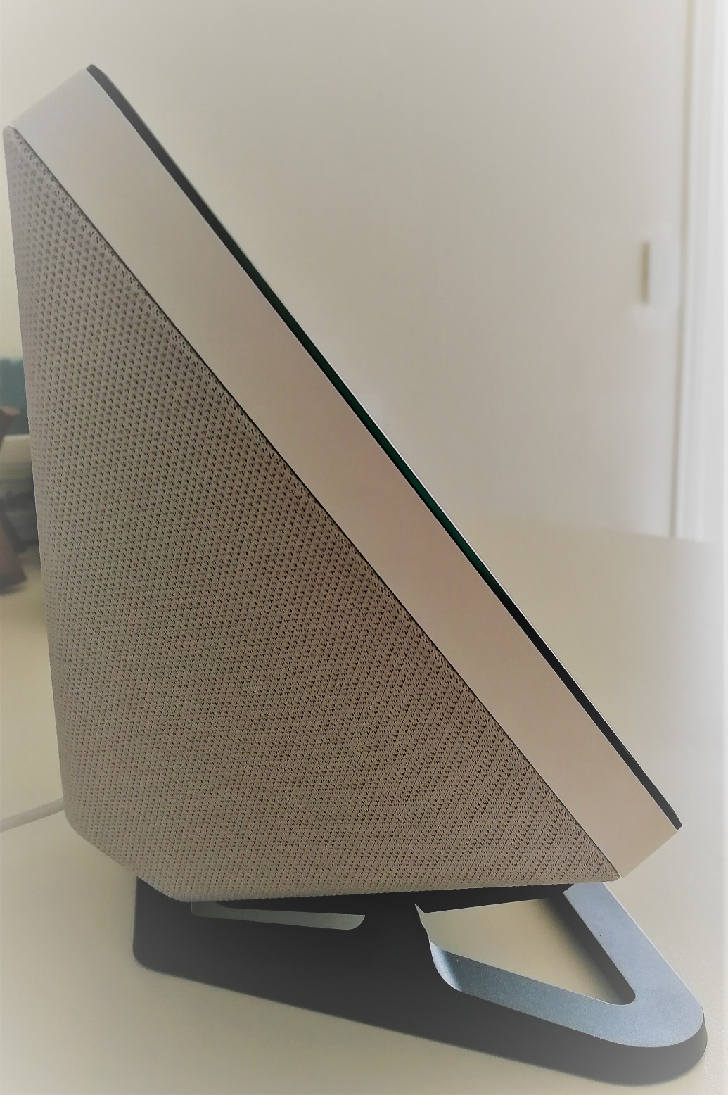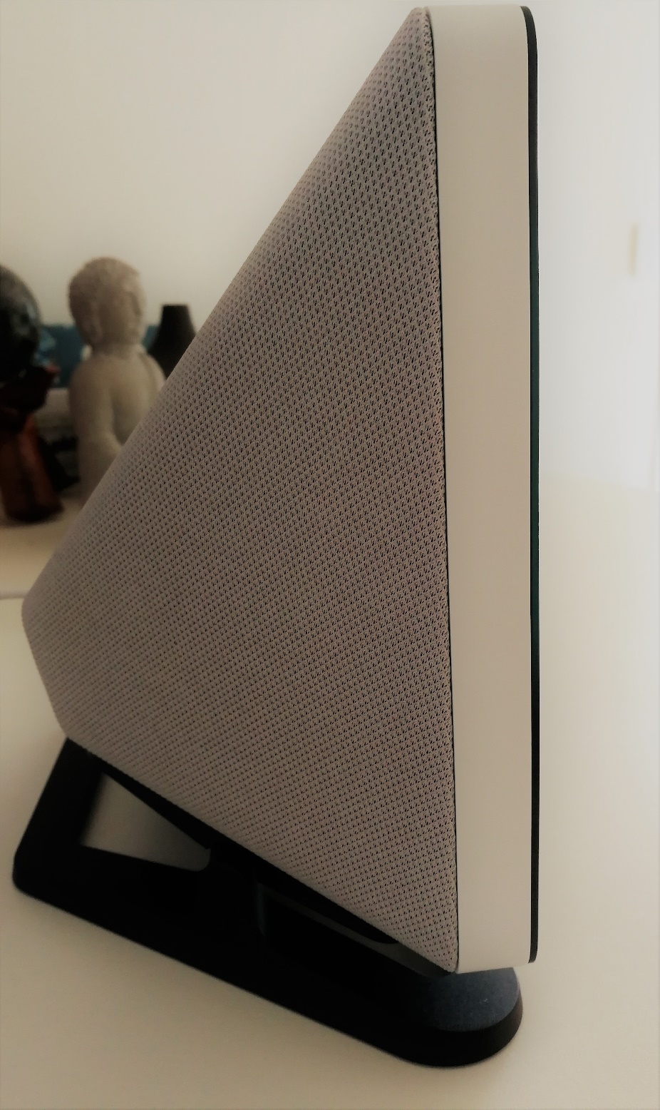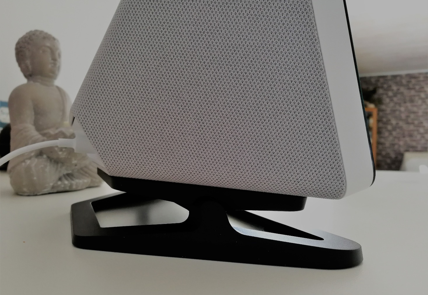 Et voilà, 15 secondes et c’est bon. Simplissime. Ce support est vraiment intéressant à utiliser. En effet, comme nous l’avons annoncé en début de l’article, votre Show va maintenant pouvoir être incliné ou relevé en fonction de vos envies. A la rédaction, nous nous servons beaucoup du Show pour des appels vidéo et c’est franchement un réel atout de pouvoir modifier le positionnement de la caméra en fonction de la luminosité ou de notre installation. Le rendu final est aussi très bon, le support ne dénaturant pas l’ensemble qui devient pour le coup relativement cohérent. De plus, le Show est vraiment bien sécurisé sur son socle, impossible à détacher de façon accidentelle.