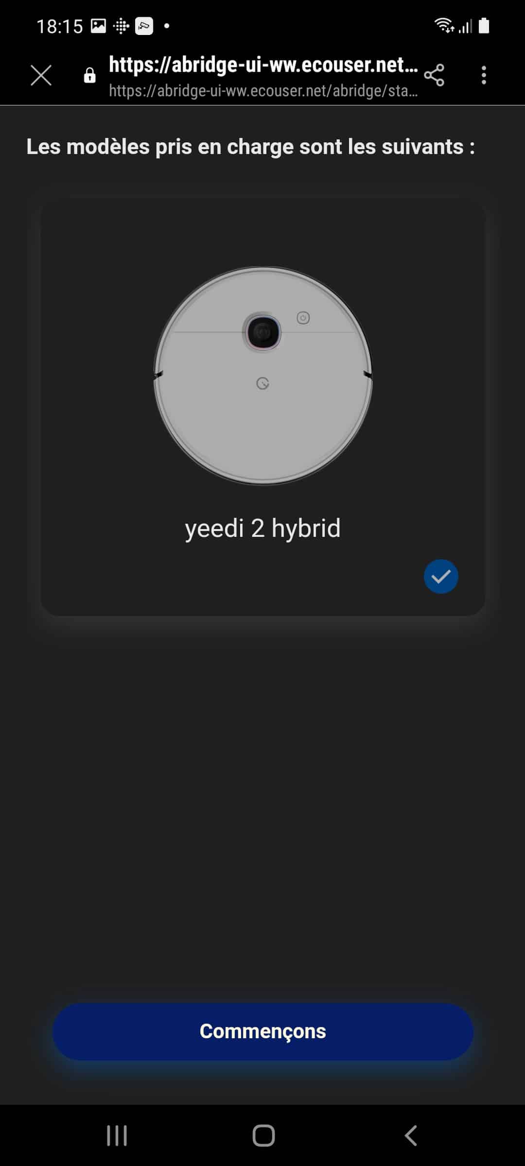 Dans la liste des appareils vous le retrouvez bien, mais pas en tant qu’aspirateur robot, et vous avez :