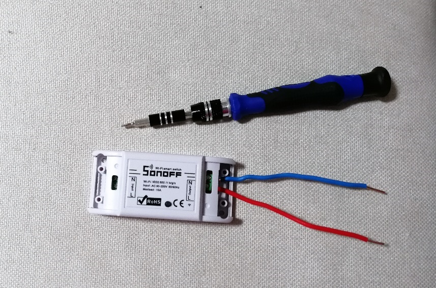 La première étape va consister à démonter votre plafonnier car il va falloir mettre les mains dans le cambouis. Eteignez bien entendu la lumière et disjonctez la pour plus de sécurité. Regardez bien vos fils et leurs raccordements afin de ne pas faire d’erreur par la suite. Puis préparez deux fils de longueur suffisante. En effet, ces deux fils iront du Sonoff à votre plafonnier. Il faut donc venir visser ces derniers au niveau de la partie output du Sonoff (N et L).