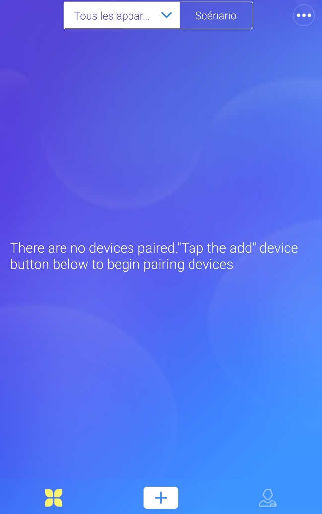 Concernant l’application EWelink, la première étape va consister à vous enregistrer en entrant votre email et un mot de passe. Sélectionnez ensuite le + en bas au milieu.
