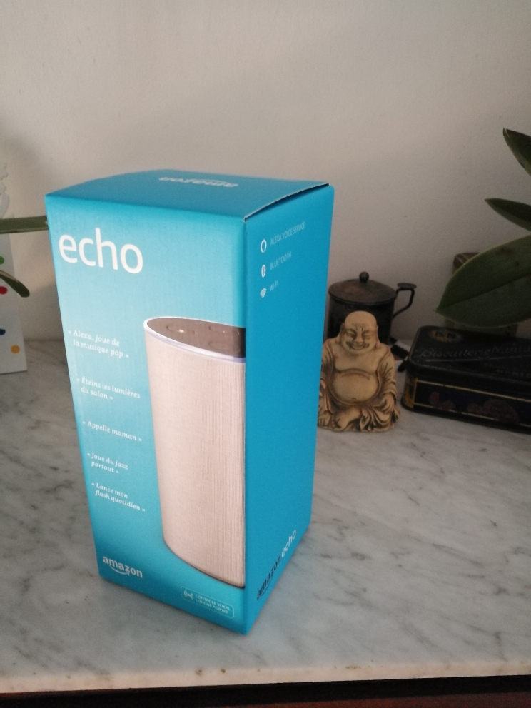 Ça y est, il est là !! Vous l’avez enfin votre Echo ! Il est beau, il a un super design… mais il n’est pas encore installé. Donc, nous allons faire cela ensemble car je sais que nous pouvons être fébrile dans ces instants.