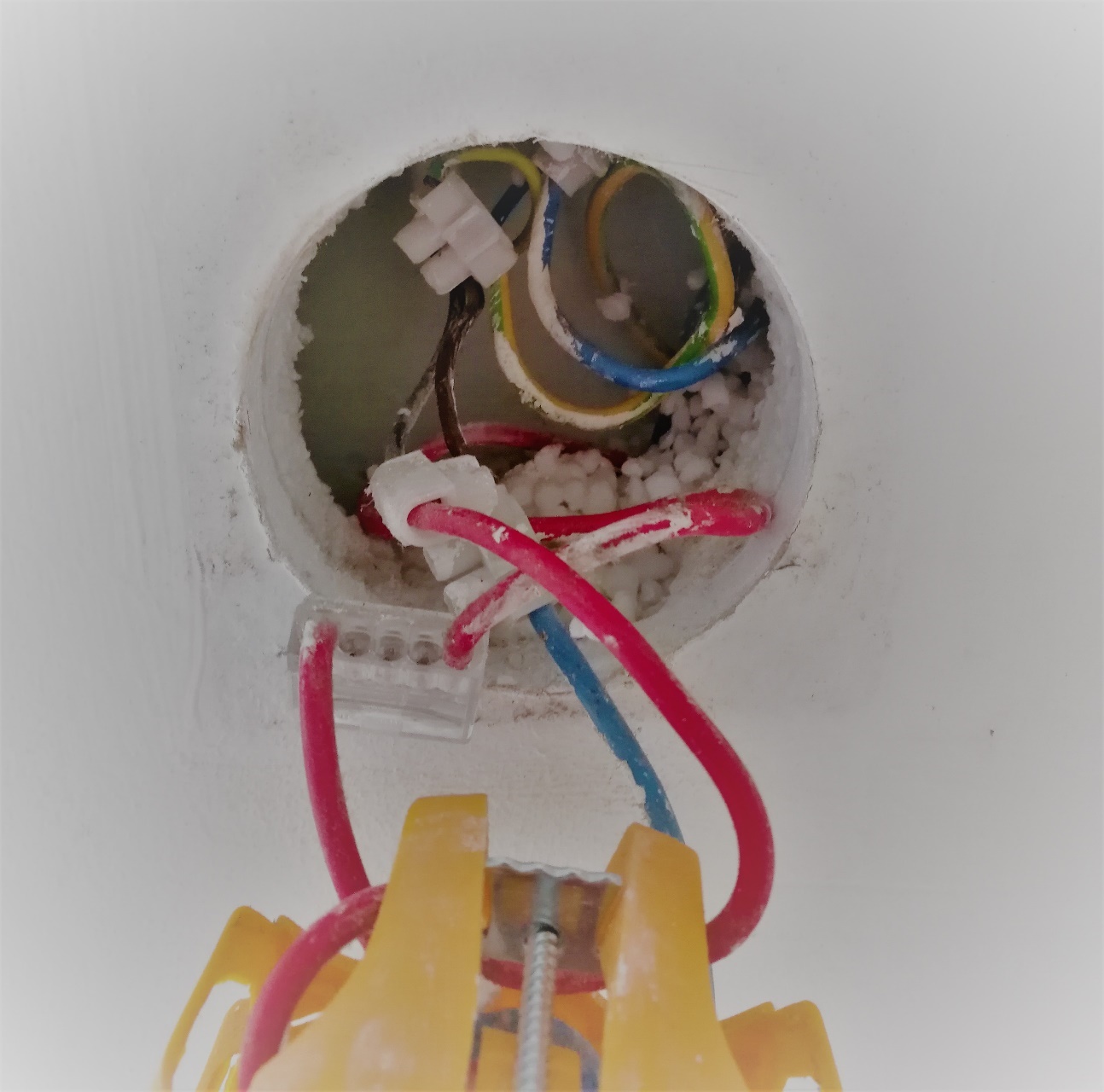 En cas de remplacement d’un interrupteur, le plus difficile sera de s’assurer du respect du code couleur des fils. Si comme dans le cas de votre serviteur vous tombez sur les rallonges de fils via des dominos (et bien entendu sans respect du code couleur), le plus simple et de tirer si possible sur l’arrivée des câbles depuis le volet pour voir le câblage initial et ainsi repérer les fils. L’utilisation d’un multimètre peut être difficile pour trouver les fils venant du volet si vous débranchez tout (on teste en comparaison avec la terre. Terre / neutre : peu de tension, phase / neutre : 220 V).
