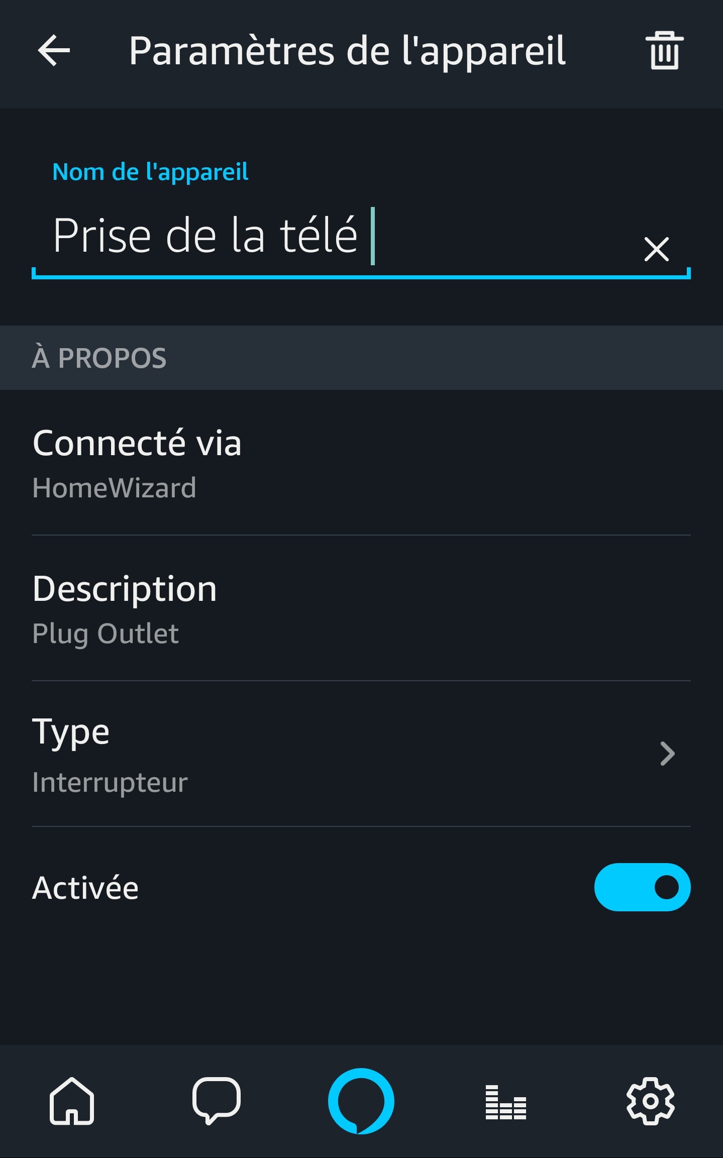 Vous pouvez donc renommer votre prise en reprenant le nom initial que vous avez mis dans l’application. En revanche, le type restera « interrupteur » car la Skill considère les prises et interrupteurs comme un seul et même groupe.